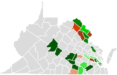 | Powhatan | 82.05% | 128 | 17.95% | 28 | 156 |