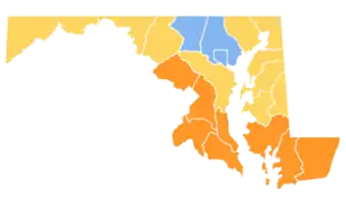 | Baltimore (City and County) | 9237 | 48.15% | 9946 | 51.85% | -709 | -3.70% | 19183 |