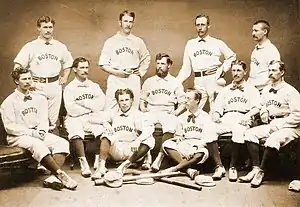 Managed by Harry Wright, Boston finished with a record of 52–18 to win the pennant by 7.5 games. Pitcher Al Spalding started 69 of the Red Stockings' games and led the NA with 52 wins. Outfielder Cal McVey led the league with 71 runs batted in, and he paced the Boston offense which scored more runs than any other team.