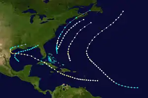 - ↑ Atlantic basin Comparison of Original and Revised HURDAT. Hurricane Research Division; Atlantic Oceanographic and Meteorological Laboratory (Report). National Oceanic and Atmospheric Administration. April 2017. Retrieved May 16, 2017.