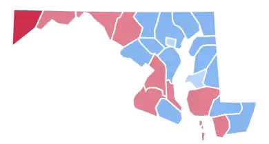 | Baltimore City | 47,444 | 48.64% | 47,901 | 49.11% | 731 | 0.75% | 1,461 | 1.50% | -457 | -0.47% | 97,537 |
