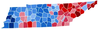 For over a century after the Civil War, Tennessee was divided according to political loyalties established in that war. Unionist regions covering almost all of East Tennessee, Kentucky Pennyroyal-allied Macon County, and the five West Tennessee Highland Rim counties of Carroll, Henderson, McNairy, Hardin and Wayne[1] voted Republican – generally by landslide margins – as they saw the Democratic Party as the “war party” who had forced them into a war they did not wish to fight.[2] Contrariwise, the rest of Middle and West Tennessee who had supported and driven the state’s secession was equally fiercely Democratic as it associated the Republicans with Reconstruction.[3] After the disfranchisement of the state’s African-American population by a poll tax was largely complete in the 1890s,[4] the Democratic Party was certain of winning statewide elections if united,[5] although unlike the Deep South Republicans would almost always gain thirty to forty percent of the statewide vote from mountain and Highland Rim support.
