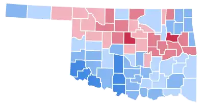 This was one of only two elections in which Oklahoma County, home to the city of Oklahoma City, voted for a candidate that lost the state.