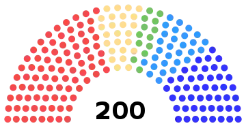 Last election 38.40%, 83 seats 25.44%, 55 seats 14.23%, 26 seats