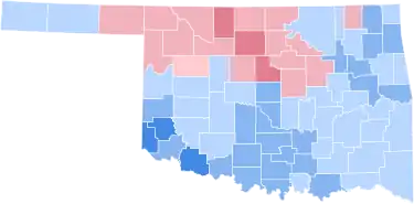 | Nowata | 1,012 | 44.56% | 1,087 | 47.86% | 146 | 6.43% | 26 | 1.14% | -75 | -3.30% | 2,271 |
