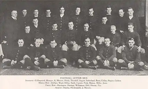 During this camp session, Coach Duff's most significant personnel adjustment was moving Robert Peck from fullback to center, where he would become a three time All-American.[21] Camp disbanded on September 24 and the squad headed to Ithaca to take on the Big Red of Cornell.[22]