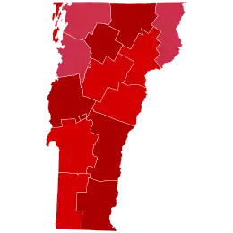 Harding swept every county in Vermont by landslide margins, taking more than sixty percent of the vote in all fourteen. Harding broke seventy percent of the vote in eleven counties, and even broke eighty percent in five.