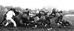 Jess Neely, Lynn Bomar, and Gil Reese were credited with strong performances against Michigan.[8] Although the result was viewed as a disappointment among Michigan fans, the 1923 Michiganensian noted that the game had matched "two of the best football machines in the country" and proved that Michigan's inexperienced line had become "a dependable stonewall defense."[13] Michigan was the only team to shut out Vanderbilt during the 1921 or 1922 seasons. Vanderbilt and Michigan were the top two defenses in the nation as measured by points against per game.[14] Vanderbilt under McGugin was one of the first great Southern football teams, and put together consecutive undefeated seasons in 1921 and 1922. During those years, with help from line coach Wallace Wade, the Commodores shut out the leading football teams in the South, including Alabama in 1921 (14–0), Texas in 1921 (20–0), Tennessee in 1921 (14–0), Georgia in 1922 (12–0), Kentucky in 1922 (9–0), and Sewanee twice (9–0 and 26–0).[15]