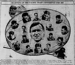 The 1925 Washington Huskies football team was an American football team that represented the University of Washington as a member of the Pacific Coast Conference (PCC) during the 1925 PCC football season. In its fifth season under head coach Enoch Bagshaw, the team compiled a 10–1–1 record, won the PCC championship, lost to Alabama in the 1926 Rose Bowl, and outscored all opponents by a total of 480 to 59.[1] The team was ranked No. 7 in the nation in the Dickinson System ratings released in January 1926.[2]