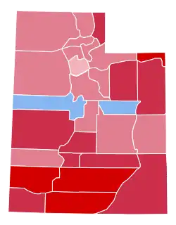 | Uintah | 1,589 | 64.00% | 880 | 35.44% | 14 | 0.56% | 0 | 0.00% | 709 | 28.56% | 2,483 |