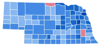 With every county in the state trending Democratic, as of the 2020 presidential election, this election marks the best ever Democratic presidential performance in Nebraska and the only time in history the state has given more than sixty percent of its vote to a Democrat in a presidential election.[4] 1932 constitutes the last occasion that Antelope, Arthur, Brown, Furnas, Garden, Garfield, Hamilton, Hooker, Loup, McPherson, Otoe, Rock, Valley, or York counties have voted for a Democratic presidential candidate.[5][6] This was also the last time that Nebraska voted more Democratic than the nation overall.