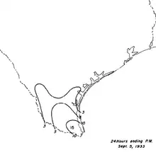 - 1 2 3 4 5 R. Hanson Weightman (September 1933). "Tropical Disturbances of August 1933" (PDF). Monthly Weather Review. American Meteorological Society. 61 (8): 234–235. Bibcode:1933MWRv...61..362D. doi:10.1175/1520-0493(1933)61<362:TSO>2.0.CO;2. Retrieved June 9, 2012.