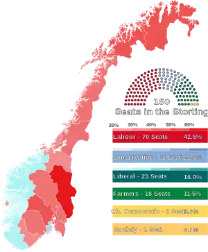 All 150 seats in the Norwegian Parliament 76 seats were needed for a majority | |||||||||||||||||||||||||||||||||||||||||||||||||||||||||||||||||||||