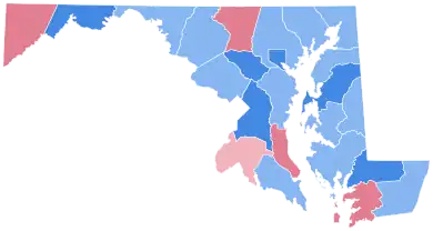 | Prince George's | 15,087 | 64.76% | 8,107 | 34.80% | 101 | 0.43% | 6,980 | 29.96% | 23,295 |