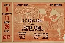 - ↑ Jim Costin (October 6, 1946). "N.D. Is Unimpressive in Trampling Pitt 33-0: Running Game Is Throttled by Young Rivals; Irish Forced to Take to Air to Win in Home Opener". The South Bend Tribune. p. III-1 – via Newspapers.com.