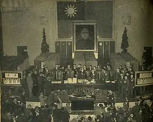 After the Northern Expedition, the Kuomintang-led Nationalist government acquired control of a unified China nominally. The party began to draft a constitution to transit the government from tutelage period to constitutional period, according to the political philosophy of Sun Yat-sen.