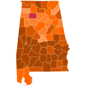 | Cullman | 3,587 | 66.87% | 1,755 | 32.72% | 6 | 0.11% | 16 | 0.30% | 1,832 | 34.15% | 5,364 |
