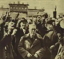 At the time of the 1927 split-up between the Communists and Nationalists, Mao Zedong, who became the Communist leader in 1935, served as the acting minister of publicity and education within the Nationalists, responsible for training farmers to be revolutionaries. After the split-up, the Communists began to provide Soviet-styled public education in Ruijin and other areas under its control, during which the Communist education system focused on training Communist cadres, political and cultural education for the young people and literacy education for the general public.[9] As the escalating Japanese invasion and the Nationalist policy of appeasement in the 1930s, caused discontent among university faculty and students, hyperinflation and the pervasive corruption further eroded people's support for the Nationalist government, leading to protests and demonstrations, which were responded with brutal suppression. Meanwhile, the Communist call for resistance and the United Front policy successfully attracted and recruited patriotic students.[3] After Xi'an Incident in 1937, the Communist Party became recognised as a legal party within the Republic of China and provided public education in Shaan-Gan-Ning Border Region. During the time, the education system under Communist rule focused on political education and mobilisation among the people, which deeply influenced the Communist policy on education in the 1950s.[9] The universities in Communist-controlled areas were not universities in a normal sense, as they typically aimed to teach Communist cadres about the Party's current policies, as well as the revolutionary history in China and in the West. But it provided a possible model for the university reorganisation after 1949.[3]