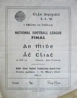 - ↑ "Thrills galore as Meath reach League final", Irish Independent, 25 April 1955, p. 9