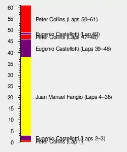 - Car #6: Cesare Perdisa (20 laps) and Stirling Moss (39 laps). They shared the 2 points for fifth place.
