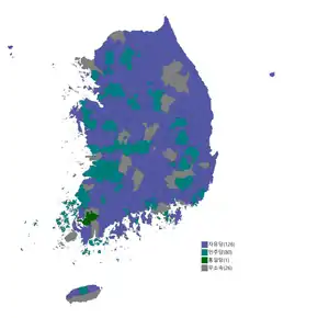 | South Gyeongsang | 40 | 20 | 15 | 0 | 5 |