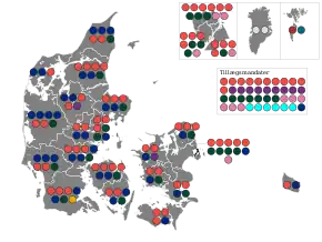 General elections were held in Denmark on 15 November 1960.[1] The Social Democratic Party remained the largest in the Folketing, with 76 of the 179 seats. Voter turnout was 86% in Denmark proper, 57% in the Faroe Islands and 66% in Greenland.[2] They were the last elections in which the electoral threshold for the Danish seats was 60,000 votes. The following year the electoral law was amended to make it 2% of the vote.