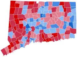 | Tolland | 48.6% | 14,575 | 51.4% | 15,386 | 29,961 | ||