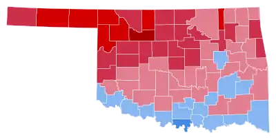 With 59.02% of the popular vote, Oklahoma would prove to be Nixon's third strongest state in 1960 after Nebraska and Kansas.[3] This election marked the first time since statehood that a Democrat won the presidency without carrying Oklahoma.