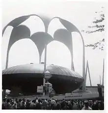 At the New York City pavilion, the Panorama of the City of New York (a huge scale model of the city) was on display, complete with a simulated helicopter ride around the metropolis for easy viewing.[58] Left over from the 1939 Fair, this building had been used partially as a recreational public roller skating rink.[59]