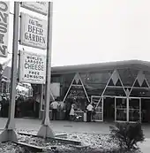 Fairgoers could also enjoy sampling sandwiches from around the world at the popular 7-Up International Sandwich Garden Pavilion which featured the innovative fiberglass Seven Up Tower.[42][43] In addition to all the 7-Up beverages one could drink, fair-goers were invited to sample varied culinary delights representing sixteen countries. While dining, visitors enjoyed live performances on four circular stages from various instrumentalists which included a five piece musical ensemble, the 7-Up Continental Band. The musical programs included popular show tunes from the Broadway stage in America, as well as musical favorites from both Europe and Latin America. The soloist John Serry Sr. appeared regularly with the orchestra to complement the international flavor of the musical program.[44][45] The dining pods featured furnishings designed by the futuristic Finnish-American architect Eero Saarinen and were enclosed by twenty-four futuristic fiberglass domes that were topped by a commanding clock tower that soared more than 107 feet (33 m) above the entire pavilion.[46][47][48]