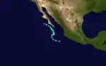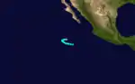 Glenda's time as a hurricane was very short lived as it was downgraded to a storm just six hours after the initial upgrade.[5] The weakening trend continued while it moved northwest, towards the Baja California Peninsula, but Glenda moved westward, avoiding landfall. It dissipated on September 12.