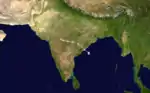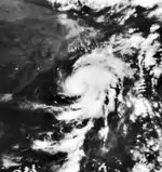 A low-pressure area that was centred over West Bengal on August 31 organized into a depression on September 2, when it was 50 km (31 mi) to the east of Midnapore. It intensified as it moved to the west, becoming a deep depression on the next day, about 50 km (31 mi) east of Ranchi. The system continued to move west across India, before weakening into a depression on September 7, near Ahmedabad, Gujarat. The depression then turned northward and entered southwest Rajasthan.[2] On September 8, the system turned to the southwest and emerged into the Arabian Sea on the following evening. Over open water, it intensified again, becoming a cyclonic storm by the evening of September 10. The cyclone developed a short-lived eye on September 11, as it drifted slowly to the west, before degenerating into a broad area of low pressure as it neared the Oman coast, on September 14.[2] This system brought widespread rains to a wide swathe of India during its existence. Some heavy rains in West Bengal flooded vast areas of many districts and resulted in some fatalities, whilst in parts of neighbouring Orissa the floodwaters damaged fields. 390 mm (15 in) of rain fell on Bardhaman over two days as the depression passed overhead. Several thousand people were made homeless in West Bengal. Both the Narmada and Tapti Rivers inundated parts of Madhya Pradesh and Gujarat. The floods in Gujarat took many lives and caused severe damage to crops and other properties. Between 300 and 400 people were washed away in two villages in Bharuch district.[2] 260 mm (10 in) of rain fell on Surat on July 7 and a further 80 mm (3.1 in) on Kutch District as the cyclone moved out to sea.[2]