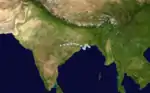 A low-pressure area moved from Burma to the Bay of Bengal on September 8, where it developed into a depression. The depression strengthened as it moved to the northwest and became a deep depression on the next day, when it was 150 km (93 mi) southeast of Calcutta. The system crossed the West Bengal coast later and moved to the northwest across the Chota Nagpur Plateau. The depression stalled over Uttar Pradesh on September 12, and remained near Lucknow until September 14. The depression then turned to the east and weakened into a remnant low over northern Bihar, on September 18.[2] The depression brought widespread rain to West Bengal, Orissa, Bihar, Uttar Pradesh, and Madhya Pradesh during its lifespan, with rains of 140 mm (5.5 in) as far west as Lucknow. The rains in Uttar Pradesh caused severe property damage and flooding, with some 150 people losing their lives in the state. The Ganges flooded in northern Bihar, inundating parts of Munger District, whilst the Gandaki River flooded parts of Motihari. The rains worsened floods in south Bengal, increasing the death toll from the floods there to 80 and affecting 8 million people, with considerable damage done to crops and housing. Jaleswar in Orissa was entirely flooded.[2]