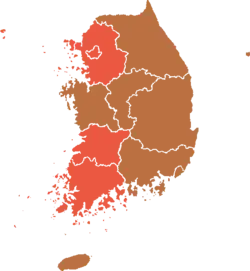 Chungnam 556,632 (53.5%) 461,978 (44.4%) 14,411 (1.4%) 5,285 (0.5%) 2,322 (0.2%) 1,040,628