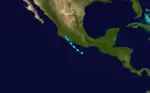 A tropical depression formed June 26 from a westward-moving area of disturbed weather. The next day, it developed gale-force winds and was named Claudia. Claudia headed northwesterly and then northwards and made landfall on June 28 approximately 30 mi (50 km) east of Acapulco. It dissipated inland the next day.[2] No deaths or casualties were reported due to this tropical cyclone.[2]