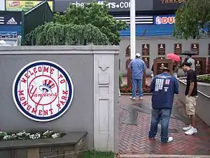 The Yankees opened "Monument Park" at the stadium in 1976. The origin of Monument Park is dated back to May 30, 1932, when the Yankees dedicated a monument to former manager Miller Huggins. The monument was placed it in front of the flagpole in center field at Yankee Stadium. Huggins was the first of many Yankees players granted this honor.