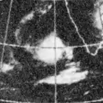 The monsoon trough spawned a tropical depression on November 14. It tracked westward, becoming a tropical storm on the November 15 and a cyclone on November 16. A break in the subtropical ridge pulled the cyclone northward, where it slowly strengthened to a peak of 125 mph winds. It hit the Andhra Pradesh coastline on November 19 at that intensity, and dissipated the next day. Strong winds, heavy flooding, and storm surge of 5 meters high killed 10,000 people,[9] left hundreds of thousands homeless, killed 40,000 cattle.[10] and destroyed 40% of India's food grains.
