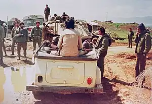 The proximate cause of the Israeli invasion was the Coastal Road massacre that took place near Tel Aviv on 11 March 1978.[9] On that day, 11 Palestinian Fatah members led by the 18-year-old female fighter Dalal Mughrabi travelled from Lebanon to Israel, where they killed an American tourist at a beach before hijacking a bus on the Coastal Road near Haifa; the group later also hijacked a second bus that was bound for Tel Aviv. After a lengthy chase and shootout, 38 Israeli civilians, including 13 children, were killed and 76 were wounded.[10]