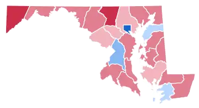 In this election, Maryland voted 12.7% to the left of the nation at-large, or an 8.69 percent bigger differential than in 1976.[3] As of the 2020 presidential election, this is the last presidential election where the Democratic candidate won Maryland without carrying suburban Baltimore County, Howard County, or Montgomery County. This election marked the first time since 1908 in which Prince Georgeโs County did not vote for the winner of the presidential election.[4] This is one of three elections between 1888 and 2000, that the state voted for the national loser (along with 1948 and 1968).