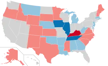 The 1984 United States Senate elections were held on November 6, with the 33 seats of Class 2 contested in regular elections. They coincided with the landslide re-election of President Ronald Reagan in the presidential election. In spite of the lopsided presidential race, Reagan's Republican Party suffered a net loss of two Senate seats to the Democrats, although it retained control of the Senate with a reduced 53–47 majority. Democrats defeated incumbents in Illinois and Iowa, and won an open seat in Tennessee, while Republicans defeated an incumbent in Kentucky.