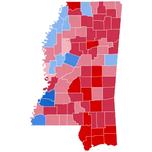 As of the 2020 presidential election, this is the last election in which the following counties voted for a Republican presidential candidate: Clay, Issaquena, Jefferson Davis, Sunflower, and Tallahatchie.[2] This marked the first time in history that Mississippi voted Republican in consecutive elections (or that a Republican carried the state twice), and the first such occasion for any party since 1956.