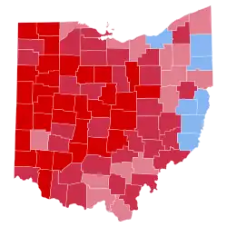 While Pennsylvania and much of the Upper Midwest shifted more Democratic in this election, Ohio voted in line with the nation, presaging its role as the only large Midwestern state (and indeed as the only large state outside the South) to vote Republican in 2000, 2004, and 2020. However, Ohio's delegation in the United States House of Representatives switched from Republican to Democratic control despite Reagan's victory in the state.[2] As of the 2020 presidential election, this is the last election in which Lucas County, Athens County, and Summit County voted for a Republican presidential candidate, the last until 2016 that Ashtabula County voted for a Republican candidate and the last until 2020 that Lorain County voted for a Republican candidate.[3] It is also the last time to date that Ohio voted to the left of neighboring Michigan.