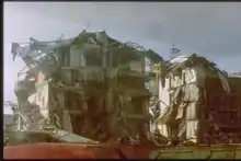 A team of earthquake and engineering experts from the United States spent a period of time in Armenia in December 1988 and January 1989. The group, including a structural engineer who specialized in seismic-resistant designs, agreed that building inadequacies were the primary reason why the strong (but not huge) earthquake was so damaging, although the freezing temperatures also played a role in the unusually high death toll. The earthquake death toll was by far the highest worldwide in the 1980s[20] and third-highest worldwide in the period 1971–2003[21][22] (33 years). The engineers who scrutinized the damaged buildings and the rescue workers who had dismantled the buildings while extricating survivors ascribe both design shortcomings and improper construction methods for the failure of the buildings. The Soviets had modified their construction style to accommodate the known seismic risk in the area, but they acknowledged to the team that many of the buildings were not built to withstand an earthquake of that magnitude. An engineer with the team stated that the regulations for the area mandated that buildings be required to stand up against events measuring seven or eight on the twelve-degree Medvedev–Sponheuer–Karnik scale. The earthquake's effects were assessed at ten on that seismic scale.[16]