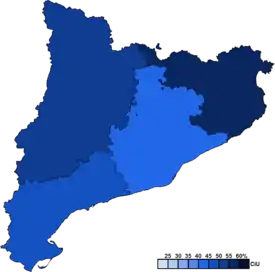The Parliament of Catalonia was the devolved, unicameral legislature of the autonomous community of Catalonia, having legislative power in regional matters as defined by the Spanish Constitution and the Catalan Statute of Autonomy, as well as the ability to vote confidence in or withdraw it from a regional president.[1] Transitory Provision Fourth of the Statute established a specific electoral procedure for elections to the Parliament of Catalonia, of application for as long as a regional electoral law was not approved, to be supplemented by the provisions within the national electoral law. Voting for the Parliament was on the basis of universal suffrage, which comprised all nationals over 18 years of age, registered in Catalonia and in full enjoyment of their political rights.