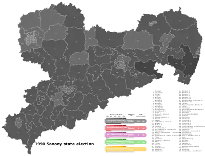 The 1990 Saxony state election was held on 14 October 1990 to elect the members of the first Landtag of Saxony. It was the first election held in Saxony since the reunification of Germany, which took place on 3 October. The Christian Democratic Union (CDU) led by Kurt Biedenkopf dominated the election with 53.8% of the vote, followed by the Social Democratic Party (SPD) with 19.1%. Biedenkopf subsequently became Saxony's first post-reunification Minister-President.