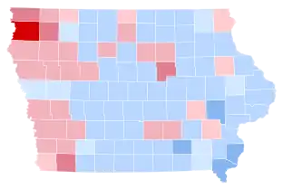 Iowa was won by Democratic Governor Bill Clinton of Arkansas with 43.29% of the popular vote over incumbent Republican President George H. W. Bush's 37.27%, a victory margin of 6.01%. Independent businessman Ross Perot finished in third, with 18.71% of the popular vote.[1] Clinton ultimately won the national vote, defeating incumbent President Bush and Perot.[2] Iowa was the only state which swung more Republican than it had been in 1988.