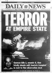 1. 1 2 3 "Gunman shoots 7, kills self at Empire State Building". CNN. February 24, 1997. Retrieved May 15, 2011.