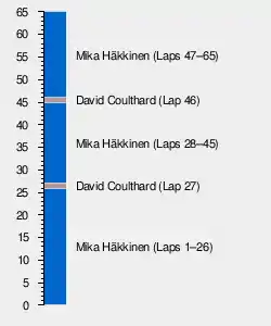 Mika Häkkinen qualified in pole position, 0.7 seconds ahead of his McLaren teammate David Coulthard in second place, with Ferrari's Michael Schumacher a further 0.8 seconds behind in third. The race proved to be a formality for Häkkinen, winning the race ahead of Coulthard in second, and Schumacher in third.