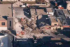 The 1998 St. Cloud explosion was a gas explosion that occurred in St. Cloud, Minnesota on December 11, 1998. A work crew installing a utility pole support anchor punctured an underground natural gas pipeline, causing the explosion. The blast killed four people, injured 11, destroyed six buildings, and caused an estimated $399,000 in damages.