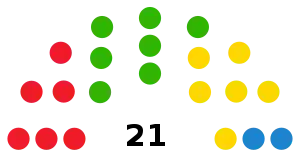 The following table lists party control in the Island Cabildos.[1] Gains for a party are displayed with the cell's background shaded in that party's colour.